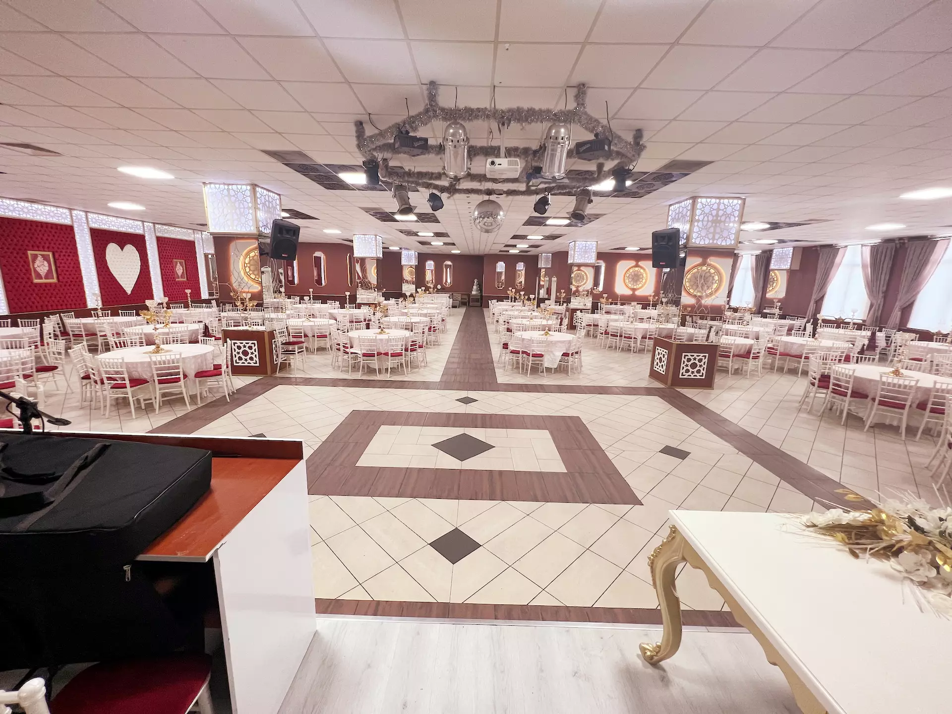 600-800 kişilik kapasiteye sahiptir. Kırmızı rengin tonları kullanılmıştır. Yuvarlak masalı ve şamdanlı dekorasyonu ile çok şık ve modern görüntüye sahiptir. Klima mevcuttur. Özel sigara içme alanı mevcuttur. Tüm detayları müşterilerimizin rahatlığı için düşünülmüş olan bu salonumuz siz değerli müşterilerimizi beklemektedir. Son teknoloji ses ve ışık sistemleri ile donatılmış olan salonumuzda her türlü yemekli veya yemeksiz düğün, toplantı, konferans vb. organizasyonlar yapılabilir. Salonumuzu görmeden karar vermeyin!