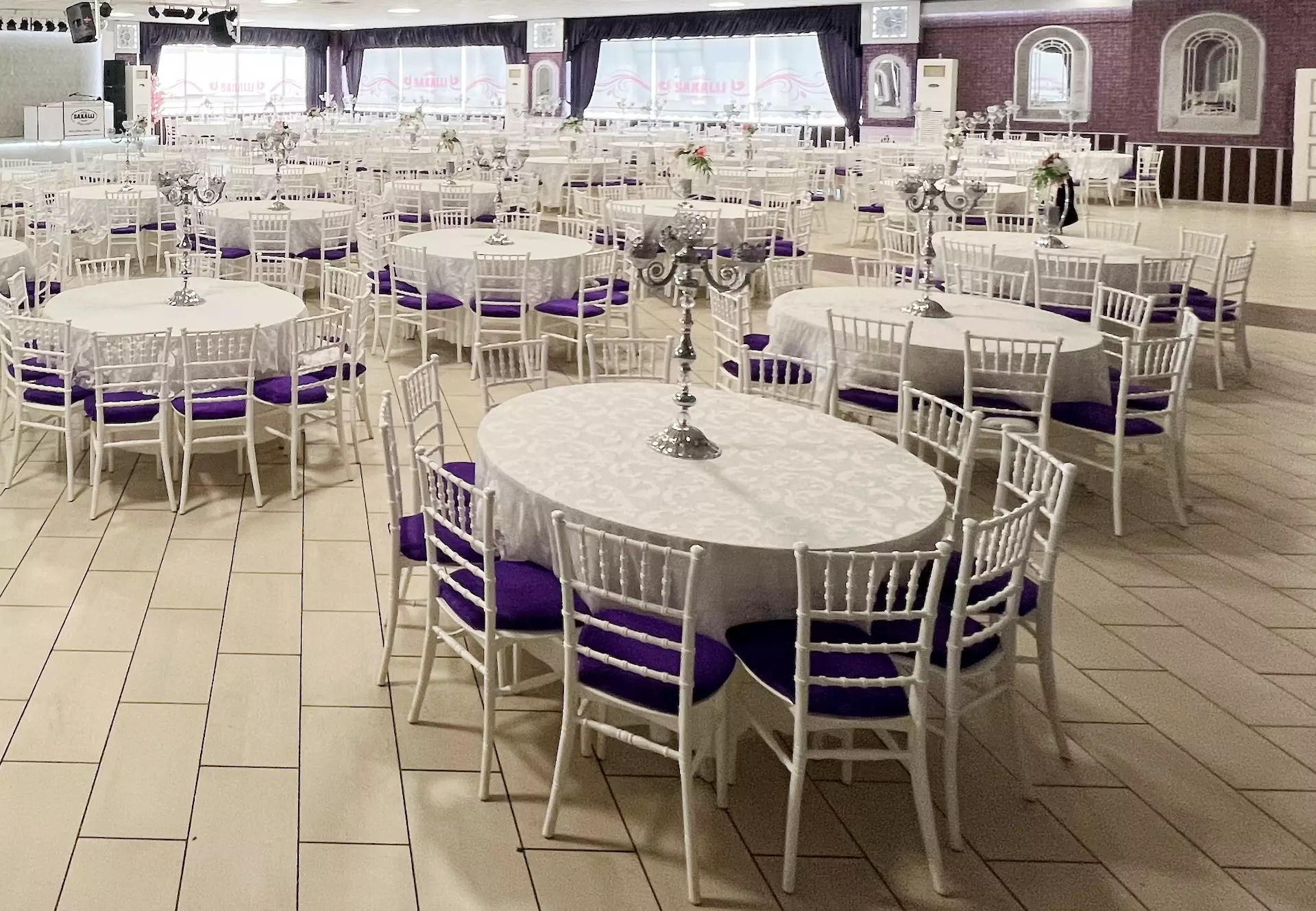 İşte siz değerli müşterilerimize Orhangazi’nin en mükemmel salonunu sunuyoruz. 750 ile 1.000 kişi aralığında kapasiteye sahiptir. Salonumuzda hiç kolon( direk ) yoktur. Mor ve lila renginin tonları kullanılmıştır. Yuvarlak masalı ve şamdanlı dekorasyonu ile çok şık ve modern görüntüye sahiptir. Tesisimizin en üst katında yer alan salonumuz mükemmel görüntüye sahiptir. Özel sigara içme alanı mevcuttur. 7 adet salon tipi klima ile ısıtma ve soğutma yapılmaktadır. Son teknoloji ses ve ışık sistemleri ile donatılmış olan salonumuzda her türlü yemekli yemeksiz düğün, toplantı, konferans vb. organizasyonlar yapılabilir. Salonumuzu görmeden karar vermeyin!